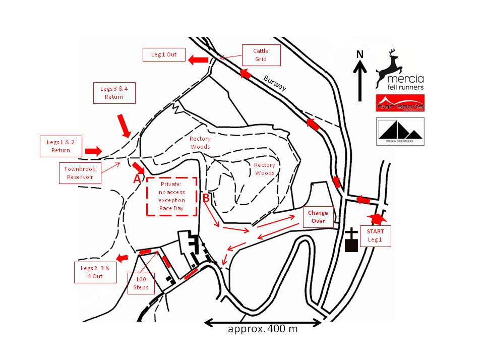 DO NOT reconnoitre or enter private land between Townbrook Reservoir and the top of Rectory Field - marked A to B on the sketch plan below.